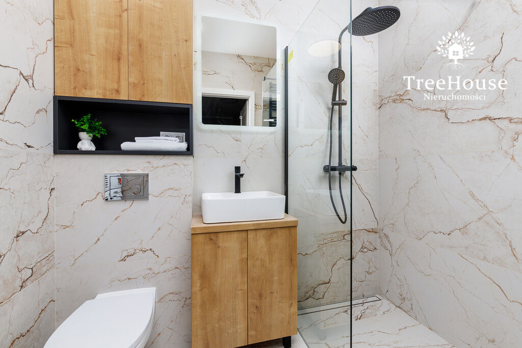 piekarnik) i podświetlanym blatem roboczym, w łazience zaś mamy