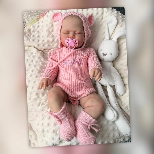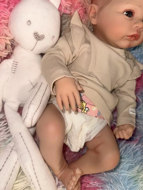 Nowa lalka z miękkim brzuszkiem 50cm w zestawie dzianinowe body + czapeczka z uszami, smoczek magnetyczny, butelka, ...