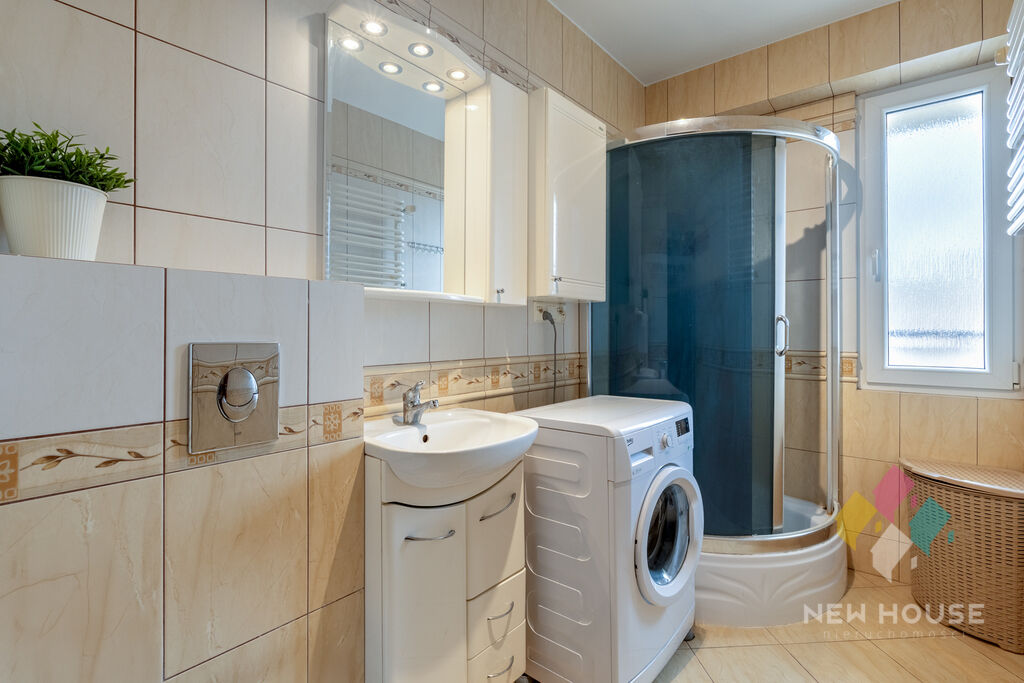 - łazienka z WC 4,4 m2 (z prysznicem, pralką)