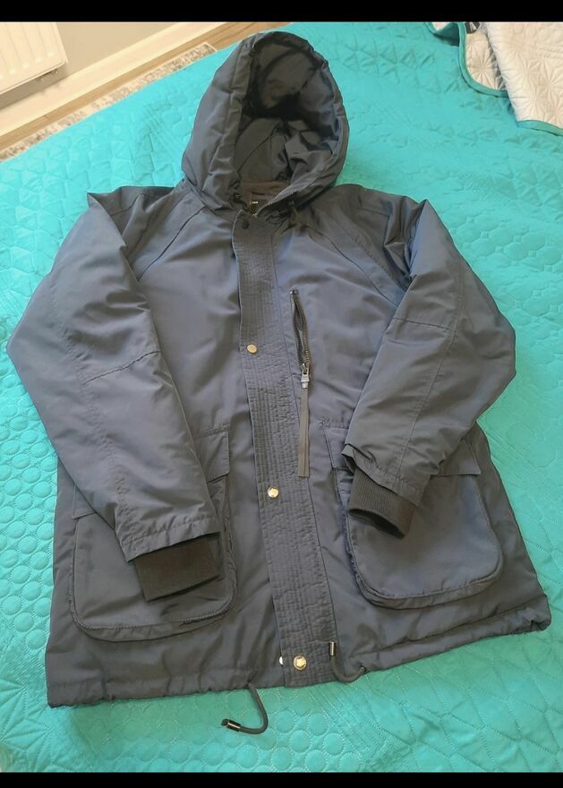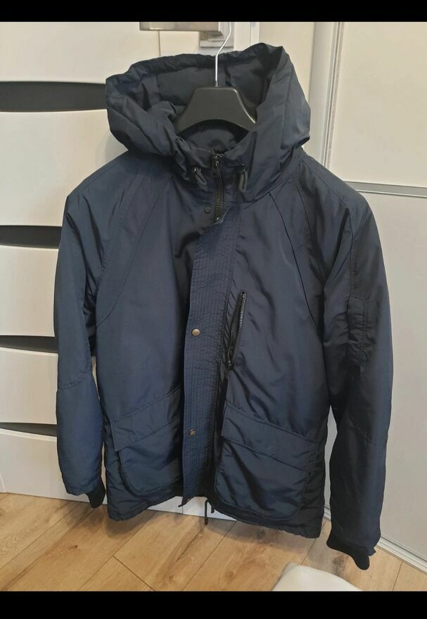 Sprzedam w idealnym stanie przepiękną kurtkę męską firmy Beresha rozmiar M-L,kolor granatowy. Kurtka ma ściągacze przy rękawie,zapinana na zainteresowana napy,na dole sznurki Brak wad jak nowa ZapraszamEla