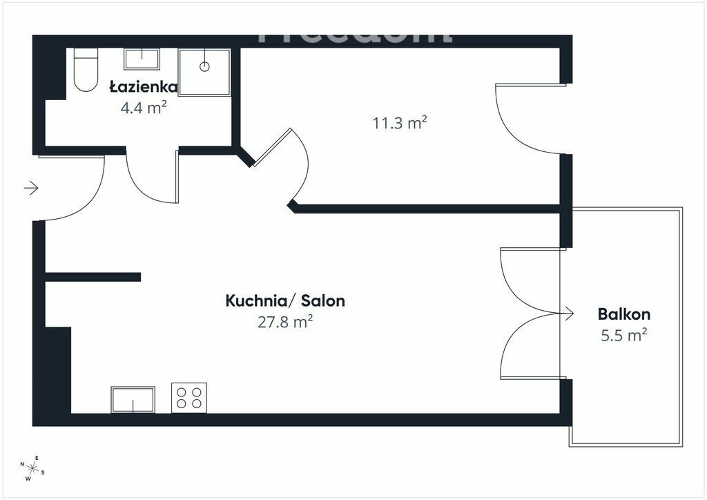 Składa się z: przestronnego i jasnego salonu z aneksem kuchennym