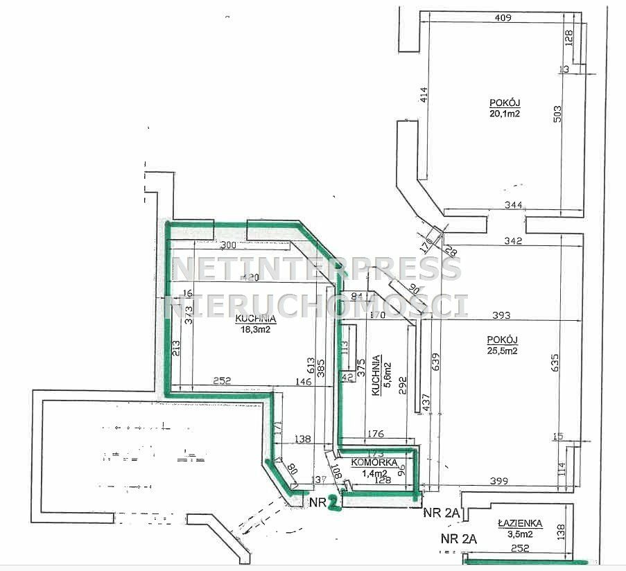 Powierzchnia użytkowa lokalu wynosi 92,4 m². W skład lokalu wchodzą: 3 pokoje, kuchnia, komórka, łazienka. Wyposażony jest w 2 balkony. Kuchnia i łazienka z oddzielnym wejściem z korytarza wspólnego dla lokali 2a i 2. Korytarz stanowi części wspólne budynku. Lokal wymaga prac remontowo-naprawczych.
