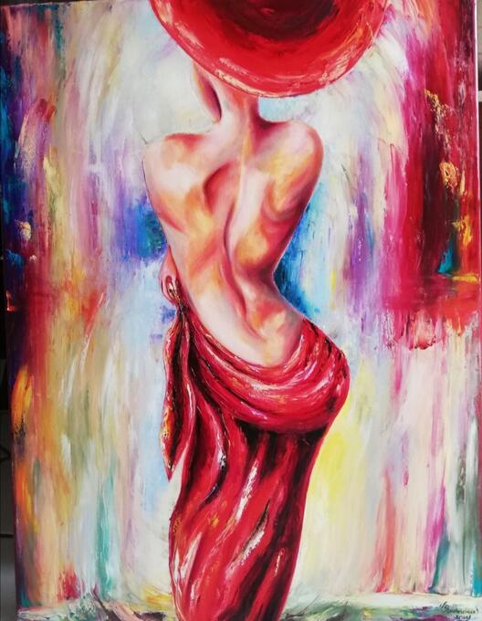 Witam serdecznie!Przedstawiam piękny obraz olejny pt: ~~kobieta w czerwieni ~~.