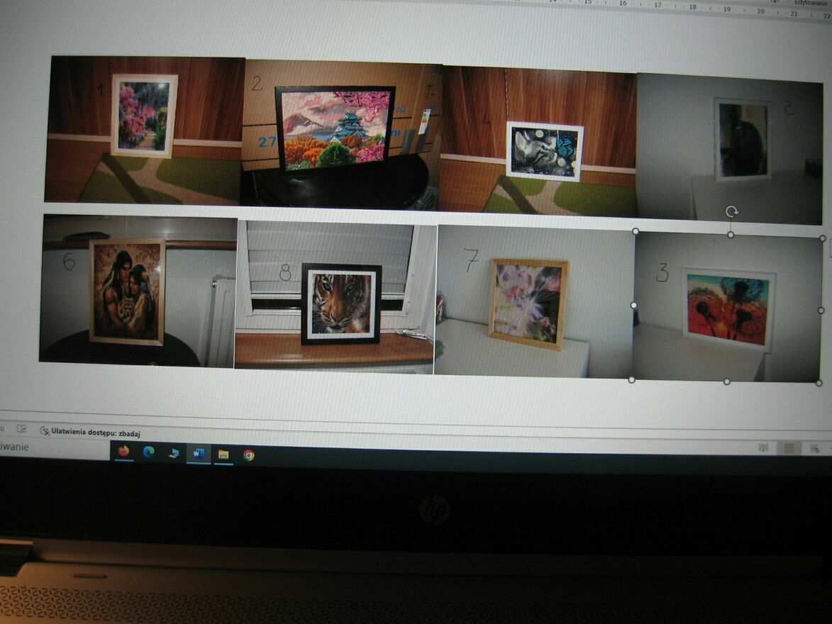 Dzień dobry.W ofercie to co na foto -obrazy wykonane techniką haftu diamentowego.