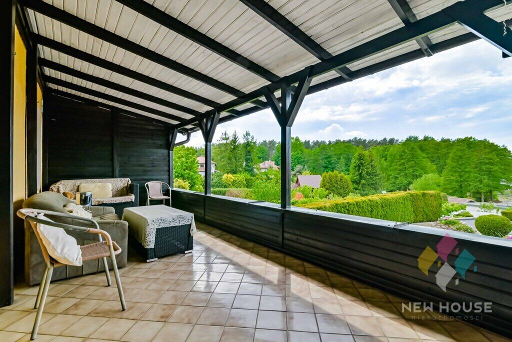 Dodatkowo znajdziemy w budynku zadaszone przejście do jeziora o pow.